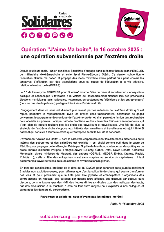 C’est non ! L’union syndicale Solidaires a lancé une campagne pour mettre en échec ce projet injuste et brutal et rappeler que de l’argent il y en a, dans les caisses du patronat.