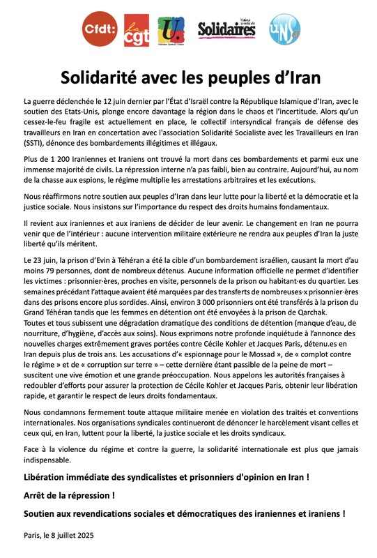 Solidarité avec les travailleuses, travailleurs et syndicats de Belgique