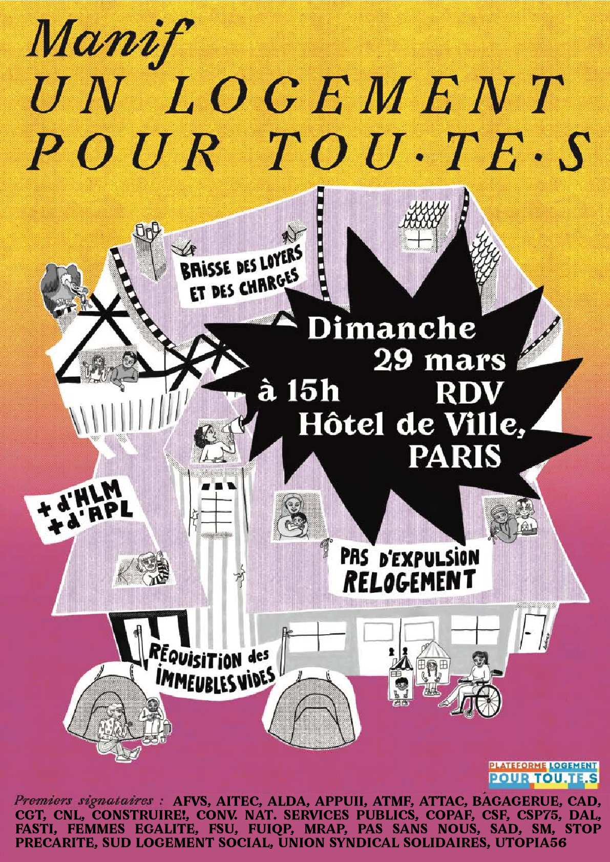 Appel de la plateforme pour un logement stable, décent et à bas loyer dont Solidaires