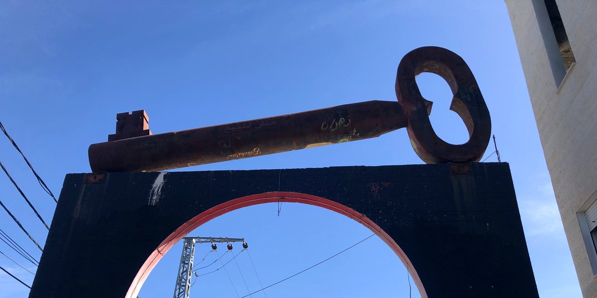 3 : L’entrée du camp de réfugiés d'Aïda, près de Bethléem : la clé est le symbole du droit au retour des réfugié-es palestiniens dans leur maison après leur expulsions à différents moments de l’histoire.