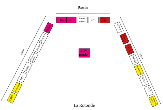 - divers stands d'organisations dont le superbe stand de Solidaires avec des autocollants, des affiches, un violentomètre géant, etc