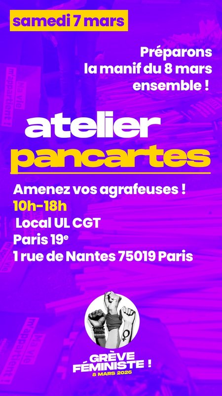 Un atelier pancartes unitaires aura lieu samedi 7 mars