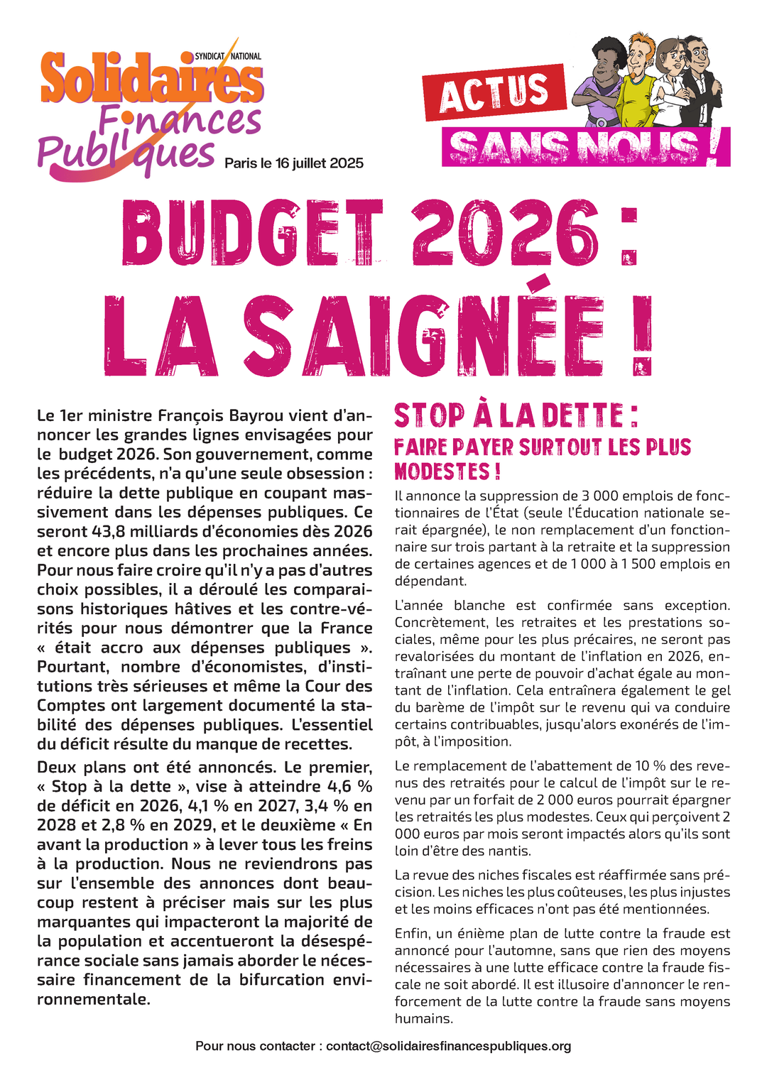 Enfin, un énième plan de lutte contre la fraude est annoncé pour l’automne, sans que rien des moyens nécessaires à une lutte efficace contre la fraude fiscale ne soit abordé. Il est illusoire d’annoncer le renforcement de la lutte contre la fraude sans moyens humains.