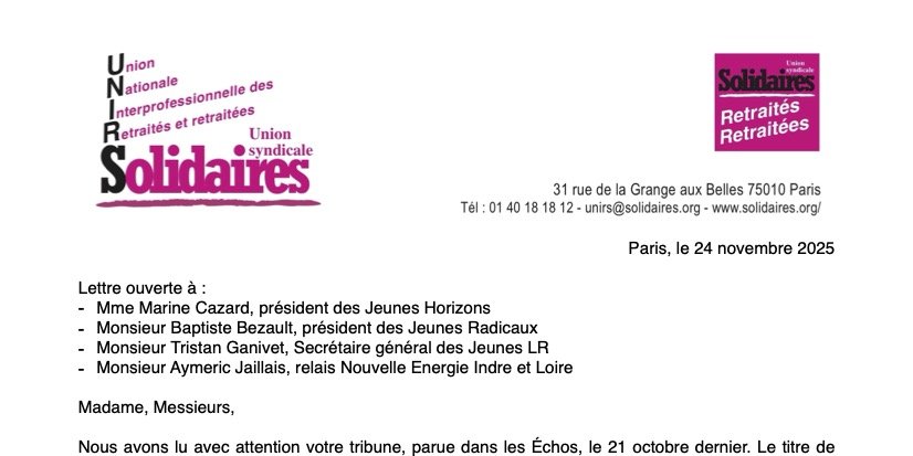 Alors s’il y a des comptes à demander, ce n’est pas à l’ensemble des retraité·e·s, mais aux responsables actuels et passés qui ont défendu des valeurs d’individualisme, de performance, d’abandon des mécanismes de solidarité générationnelle, de rejet d’une fiscalité juste en proportion des revenus, de refus de partage des richesses produites.