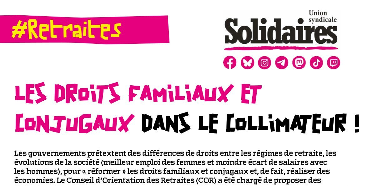 Les droits familiaux et conjugaux améliorent les pensions des femmes, mais entretiennent aussi les femmes dans les rôles d’éducation des enfants et de responsable des tâches domestiques. Pour Solidaires, ces droits doivent être maintenus, améliorés … tant que ce sont très majoritairement les mères qui sont pénalisées par la prise en charge des enfants, tant que l’égalité des salaires et de la prise en charge des enfants n’est pas réalisée. Il faut majorer les retraites des femmes au niveau des inégalités de salaires constatées et agir pour le partage par les deux parents de la prise en charge des enfants.Dans l’immédiat, que penser des propositions du COR ? Solidaires réfléchit aux conséquences de ces évolutions et interroge le caractère plus juste et plus égalitaire que ces modifications provoqueraient sur la situation actuelle.