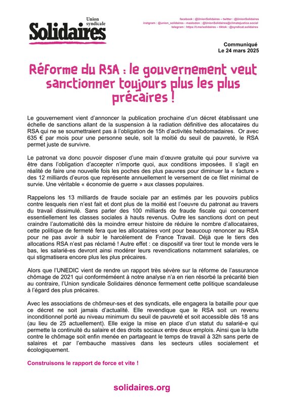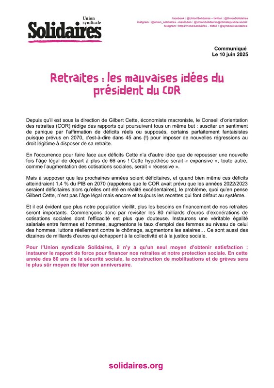 C’est non ! L’union syndicale Solidaires a lancé une campagne pour mettre en échec ce projet injuste et brutal et rappeler que de l’argent il y en a, dans les caisses du patronat.