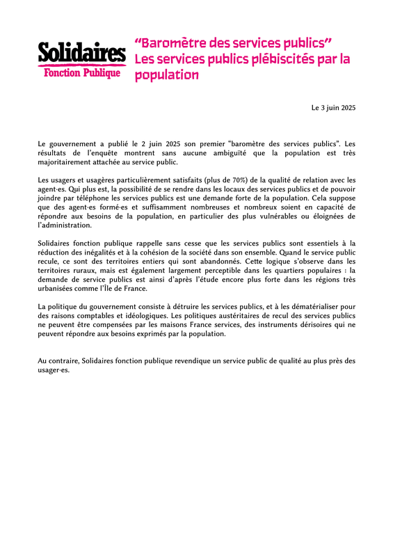 “Baromètre des services publics” Les services publics plébiscités par la population
