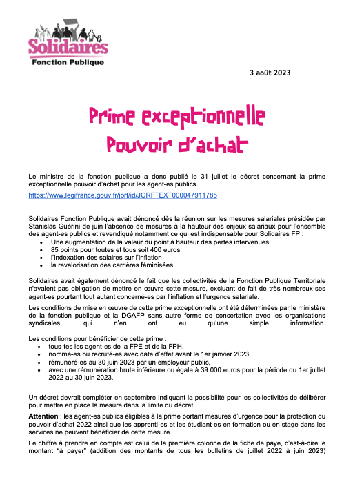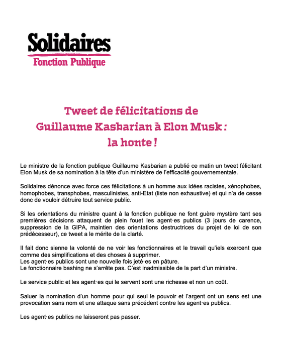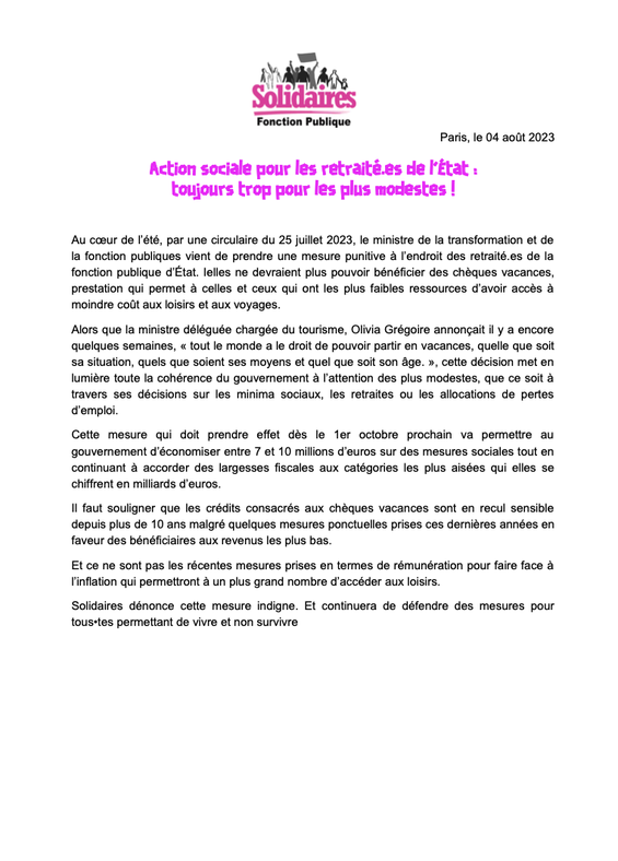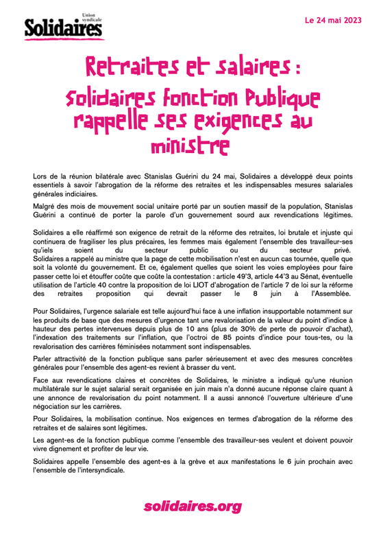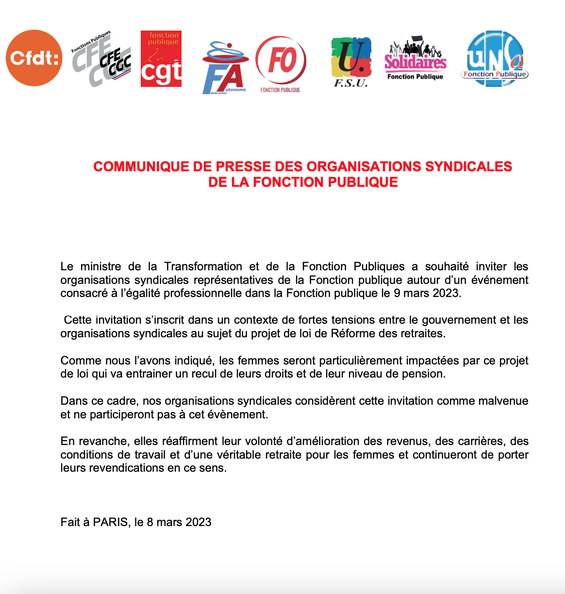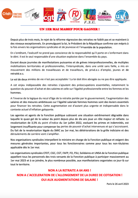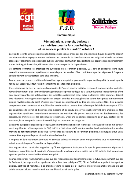 Communiqué intersyndical CGT, FO, FSU, Solidaires