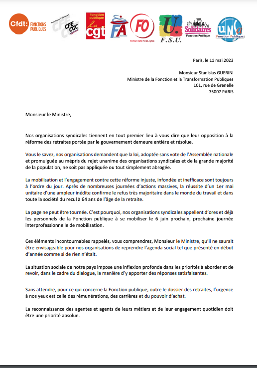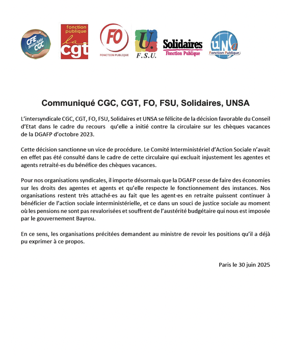Communiqué CGC, CGT, FO, FSU, Solidaires et UNSA