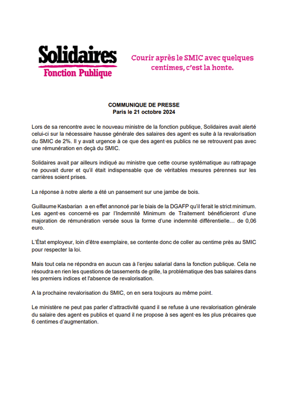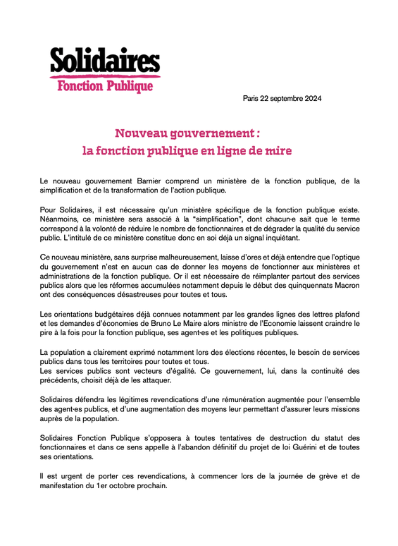 Solidaires fonction publique ne se rendra pas au « conclave » de la fonction publique