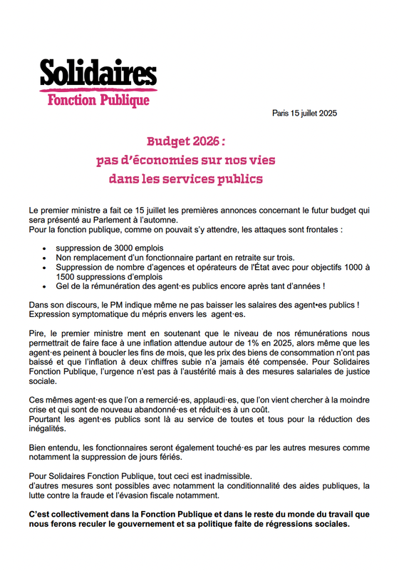 Budget 2026 Pas d'économies sur nos vies dans les services publics.