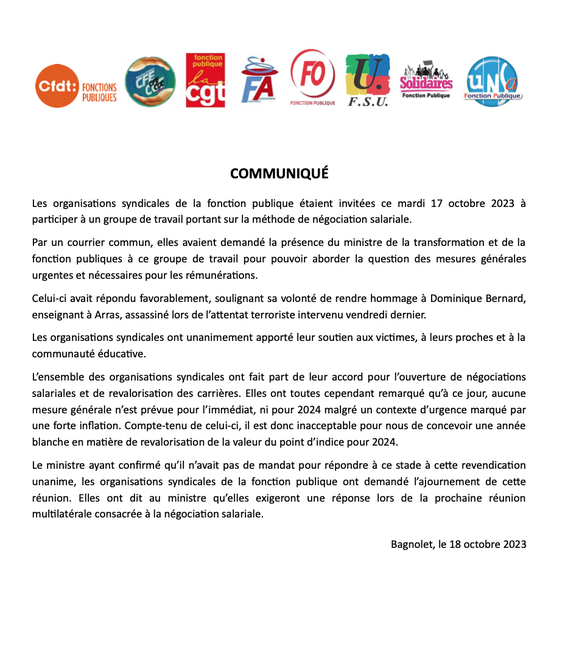 Communiqué intersyndical - GT négociation salariale 17 octobre