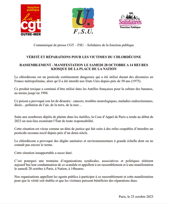 VÉRITÉ ET RÉPARATIONS POUR LES VICTIMES DU CHLORDÉCONE