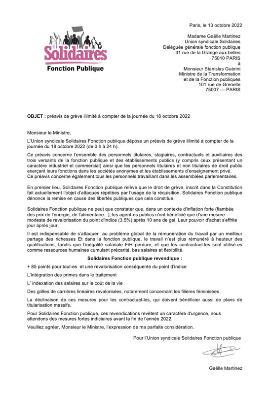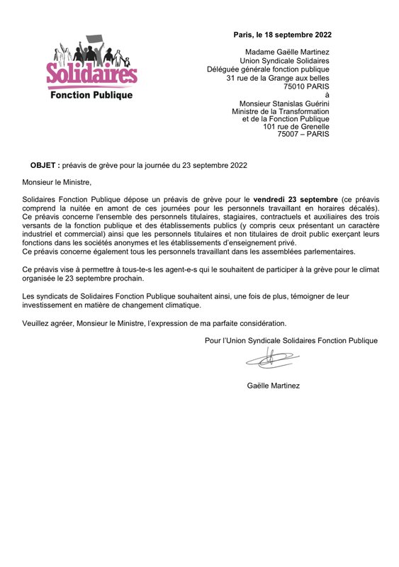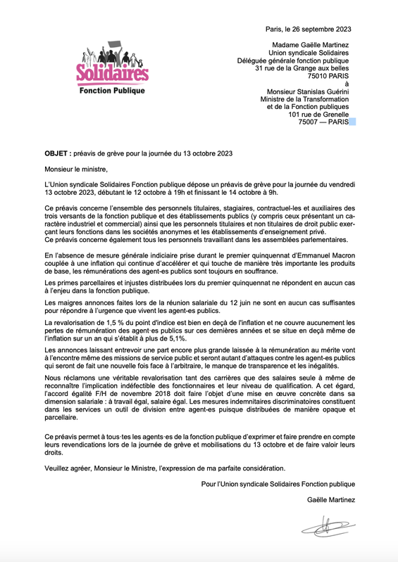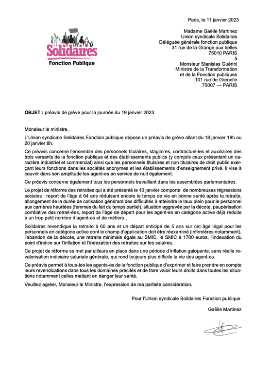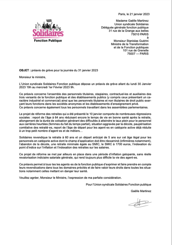 Préavis de grève du 1er décembre 2024 au 31 janvier 2025