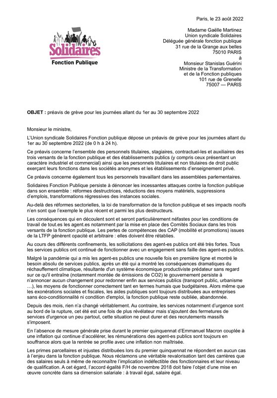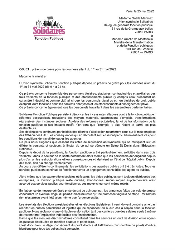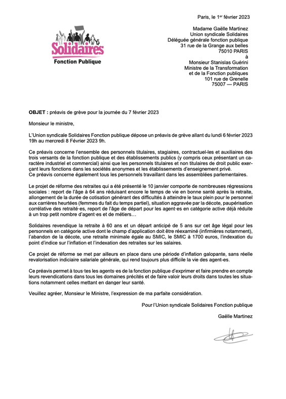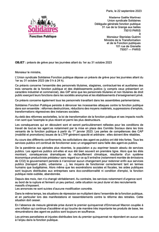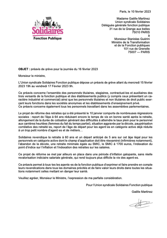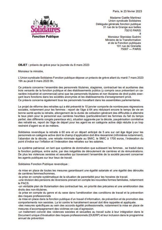 Préavis de grève Solidaires Fonction Publique 1er février 31 mars 2025