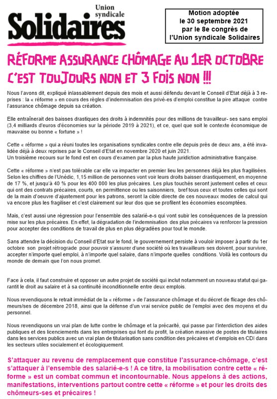 Réforme assurance chômage au 1er octobre - C’est toujours NON et 3 fois NON !!!