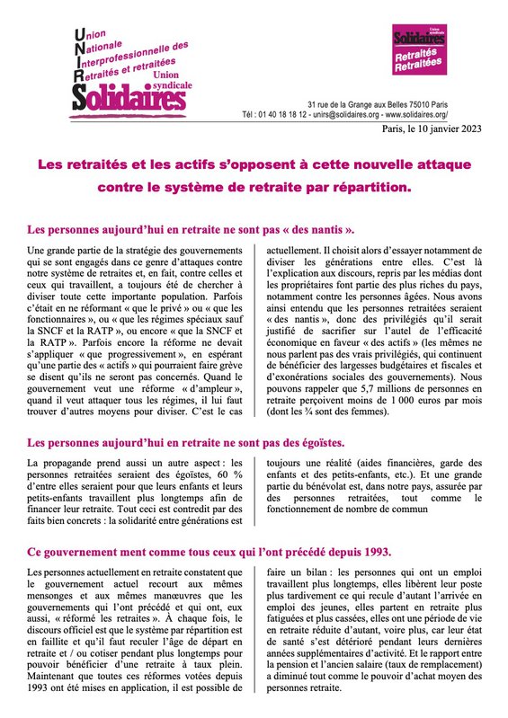 Et tous les textes plus anciens (avant avril 2022) sont sur l'ancien site de Solidaires : https://ancien.solidaires.org/UNIRS-Union-nationale-interprofessionnelle-des-retraite-es-solidaires