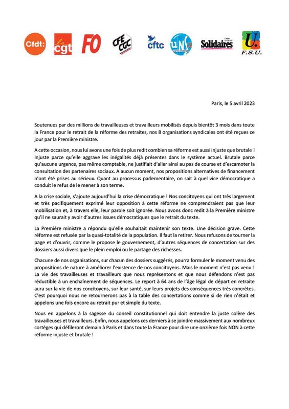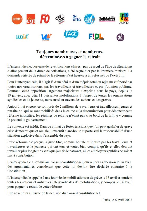 Communiqué Intersyndical : Retraite, un 1er pas qui en appellera d'autres