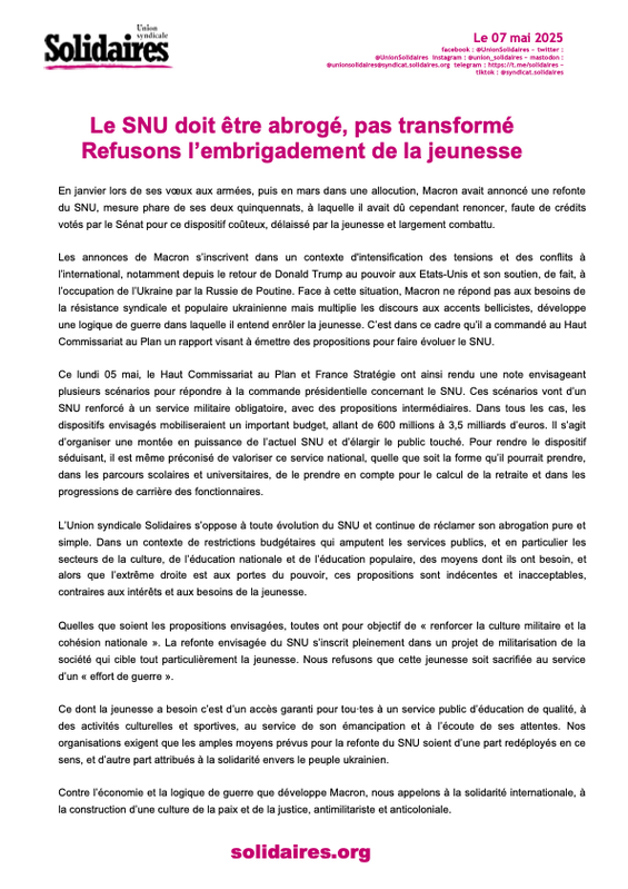 Service militaire volontaire : non à l’embrigadement de la jeunesse !