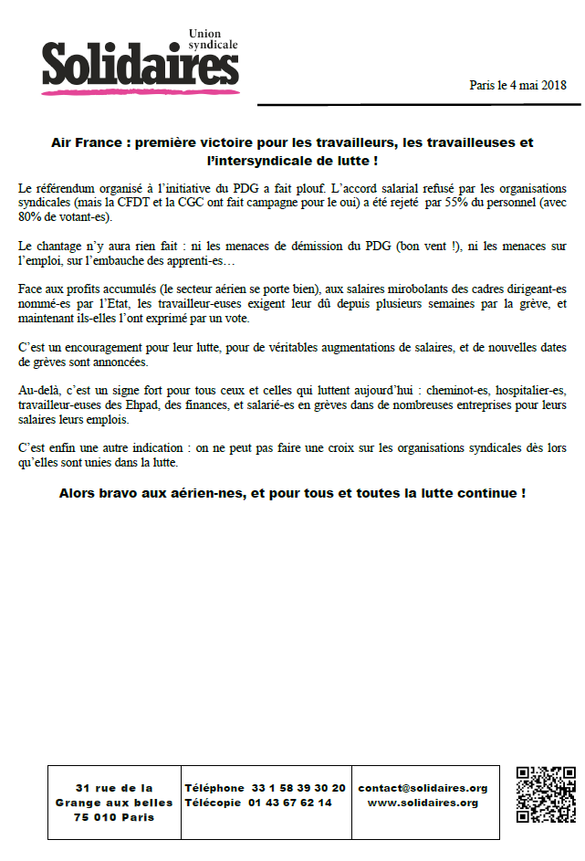 Air France : première victoire pour les travailleurs, les travailleuses et l’intersyndicale de lutte !