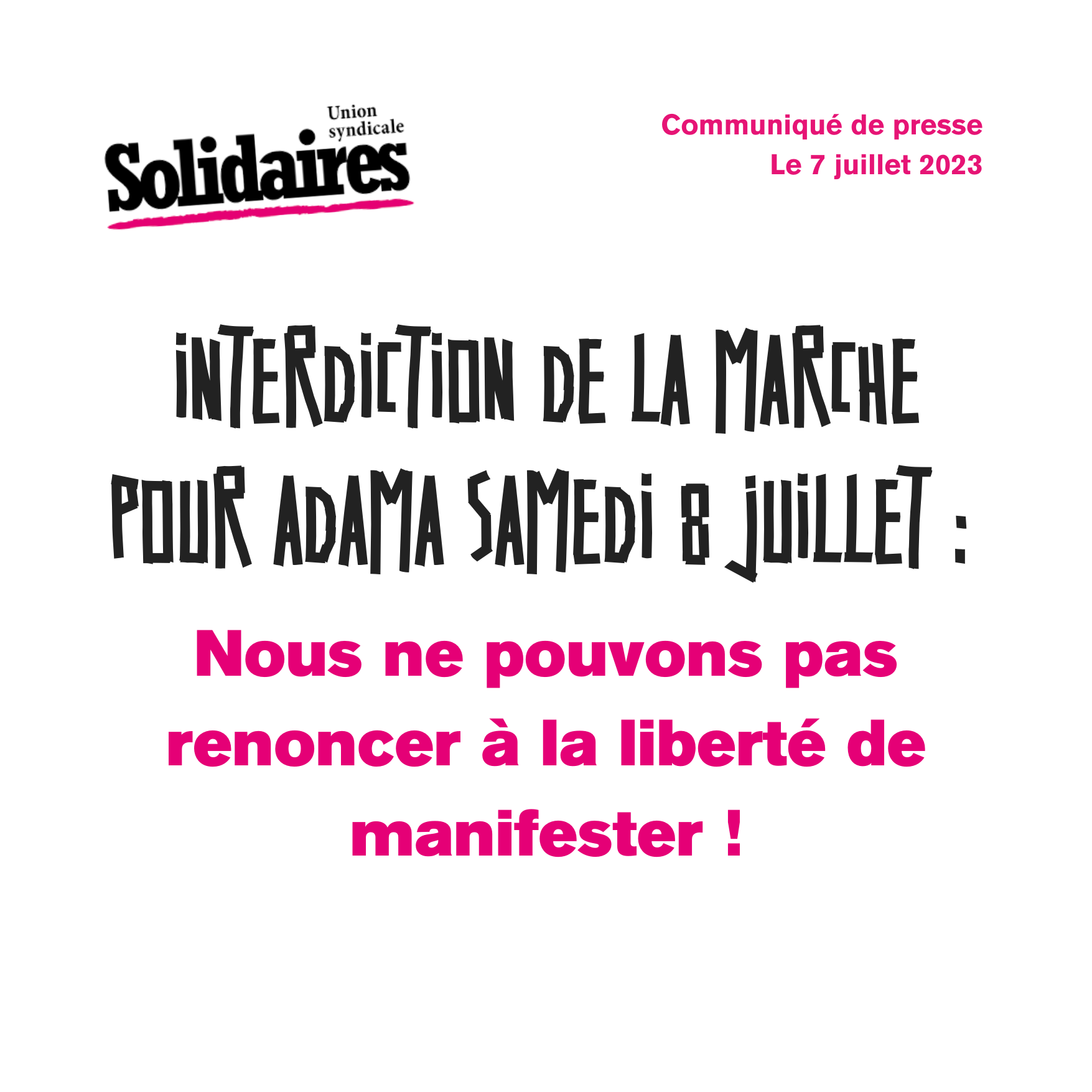 C’est pourquoi Solidaires appelle, à être à 15 heures place de la République ce samedi aux côtés d’Assa Traoré et du comité Vérité et Justice pour Adama,
