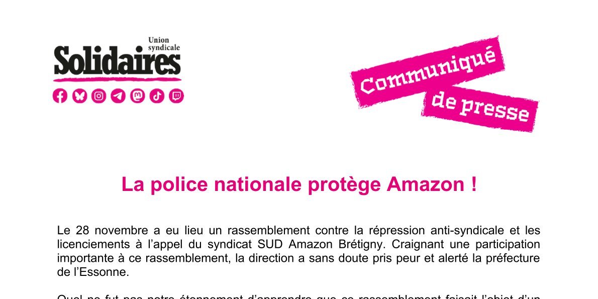 Le 28 novembre a eu lieu un rassemblement contre la répression anti-syndicale et les licenciements à l’appel du syndicat SUD Amazon Brétigny. Craignant une participation importante à ce rassemblement, la direction a sans doute pris peur et alerté la préfecture de l’Essonne.