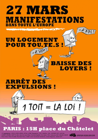 Le 27 mars prochain, à l’occasion des journées européennes pour le logement, nous manifesterons toutes et tous contre les expulsions locatives, pour disposer d’un logement digne, décent et moins cher.