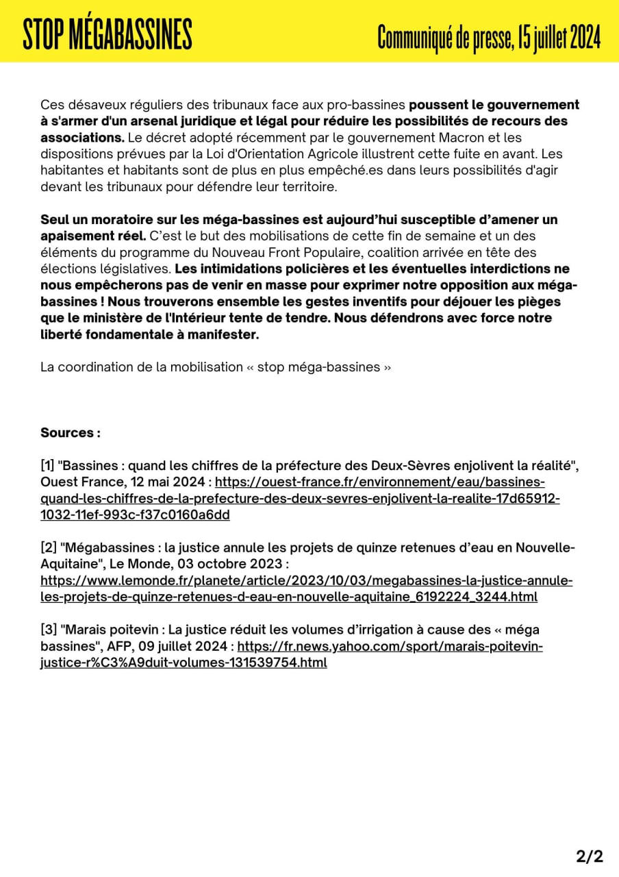[3] "Marais poitevin : La justice réduit les volumes d’irrigation à cause des « méga bassines", AFP, 09 juillet 2024 : https://fr.news.yahoo.com/sport/marais-poitevin-justice-r%C3%A9duit-volumes-131539754.html