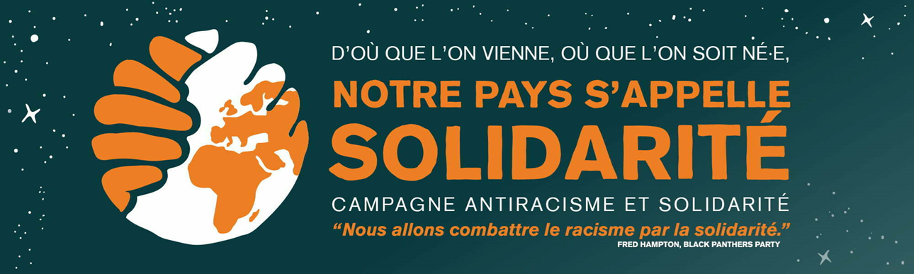Pour toutes ces raisons, Solidaires a décidé de participer activement à la campagne unitaire Antiracisme & Solidarité dont les principaux axes de la campagne sont : la lutte contre toutes les formes de racisme, la liberté de circuler et de manifester, l’égalité des droits, la dignité et la solidarité, en particulier avec les migrant-es.