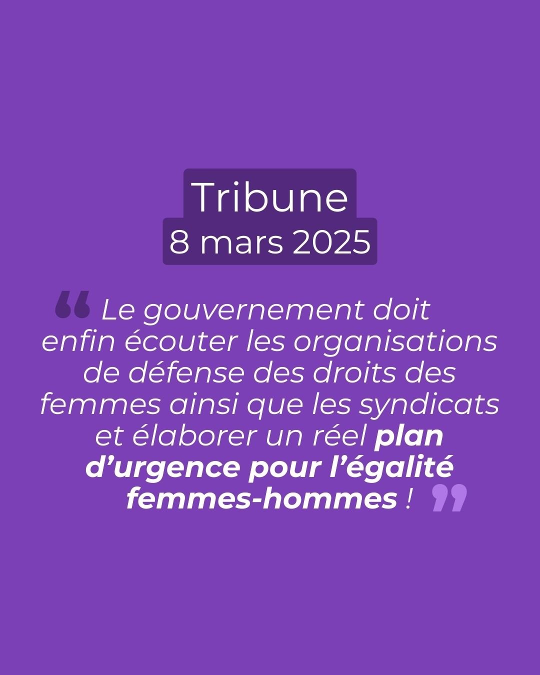 8 mars 2025 : pour un plan d’urgence pour l’égalité femmes-hommes