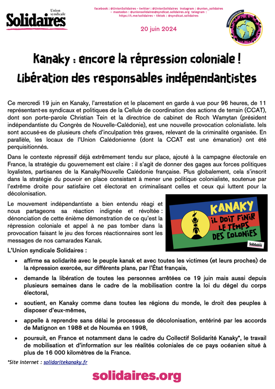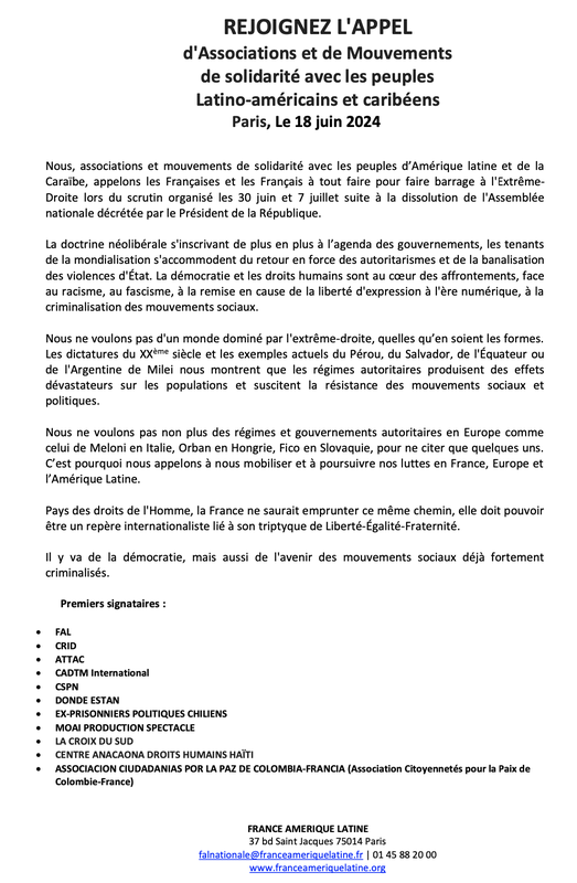 Déclaration du Collectif de Solidarité internationale avec le peuple du Venezuela
