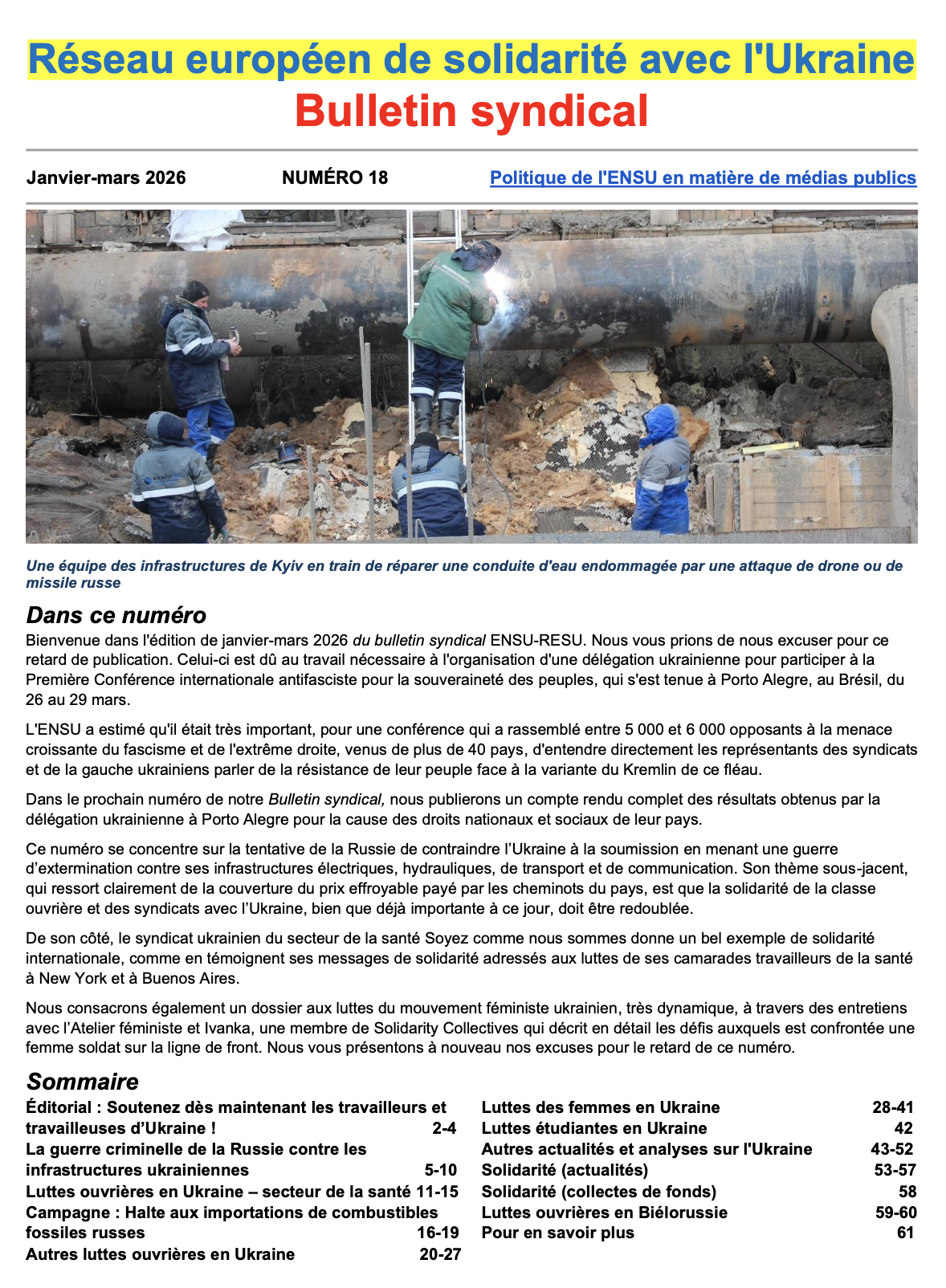Réseau européen de solidarité avec l'Ukraine - Bulletin syndical N°18