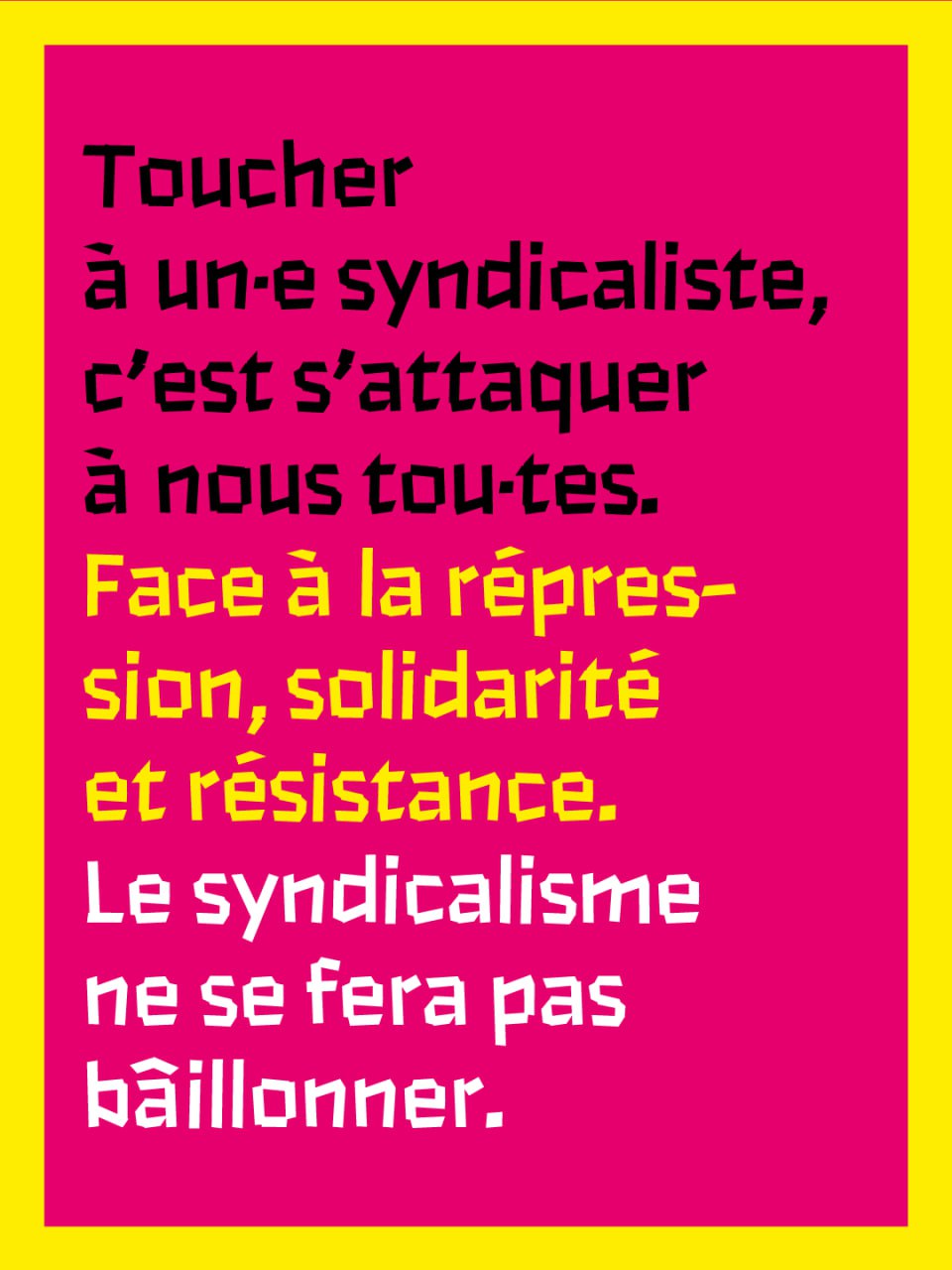 Toucher à un·e syndicaliste, c’est s’attaquer à nous tou·tes.