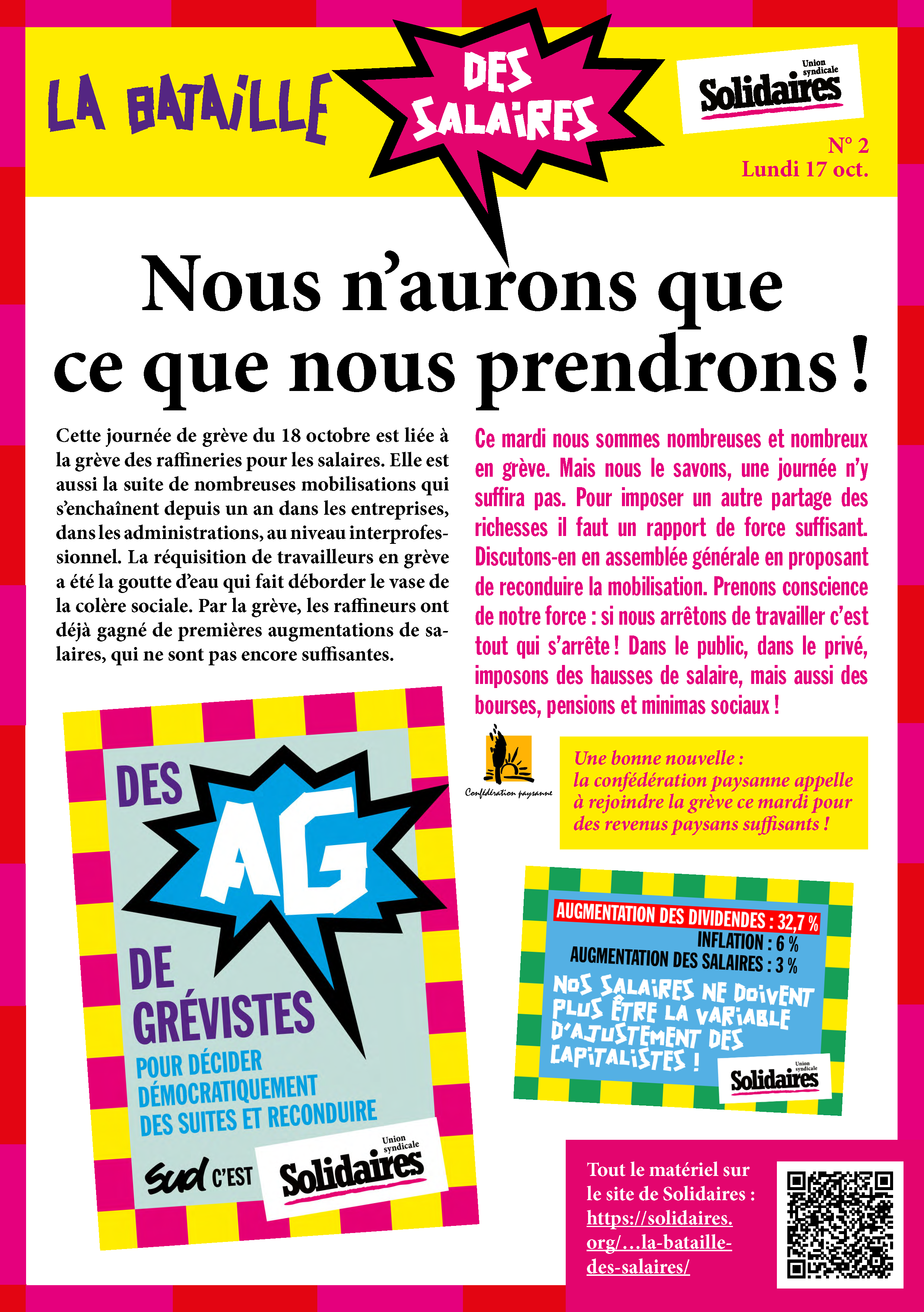 Bulletin N°2 sur la mobilisation pour les salaires, 17 octobre 2022