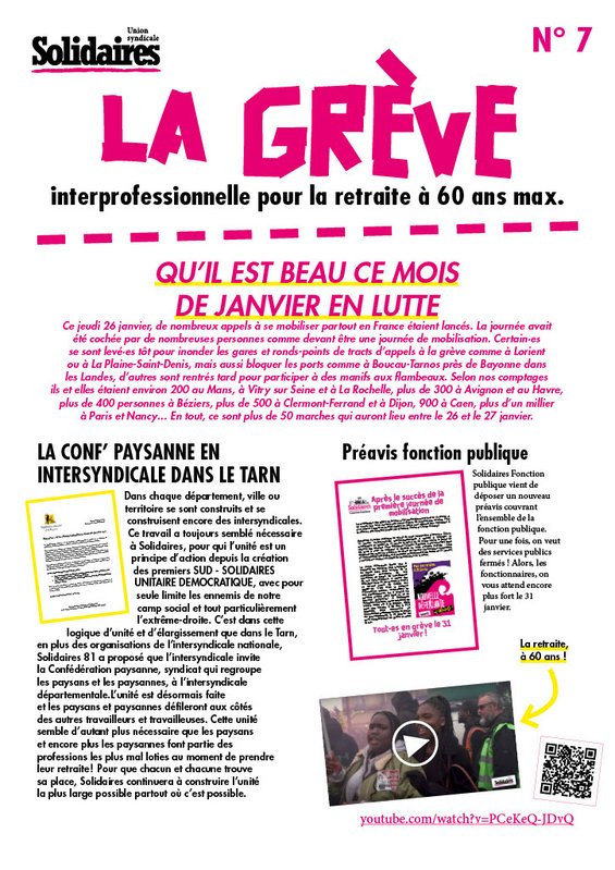Solidaires Fonction publique vient de déposer un nouveau préavis couvrant l’ensemble de la fonction publique. Pour une fois, on veut des services publics fermés ! Alors, les fonctionnaires, on vous attend encore plus fort le 31 janvier.
