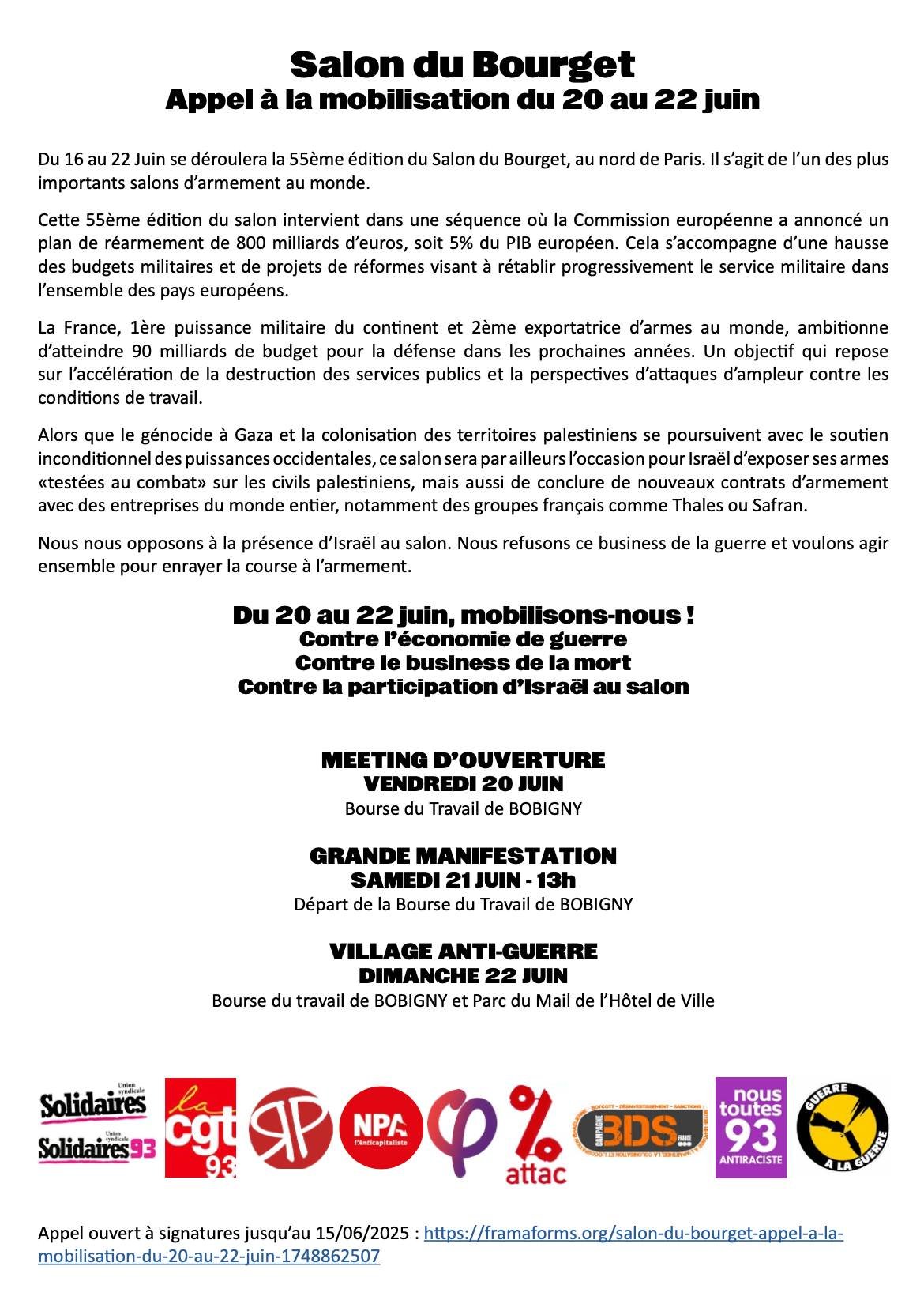 Nous nous opposons à la présence d'Israël au salon. Nous refusons ce business de la guerre et voulons agir ensemble pour enrayer la course à l'armement.