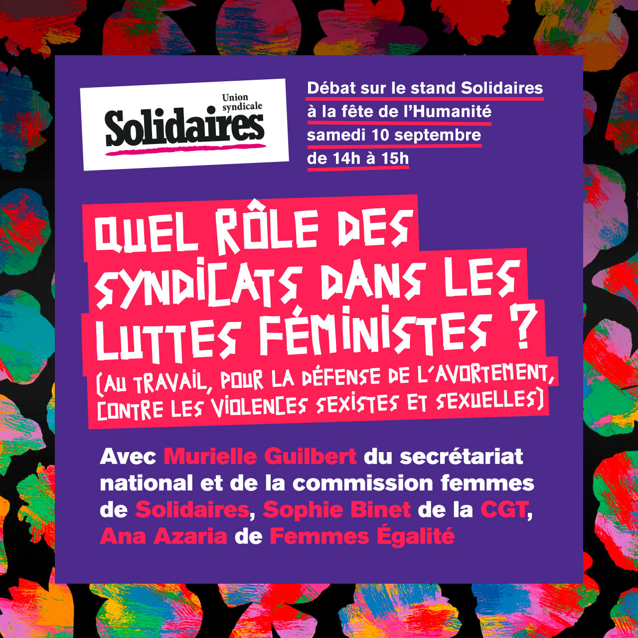 14h-15h00 / Quel rôle des syndicats dans les luttes féministes (au travail, pour la défense de l’avortement, contre les violences sexistes et sexuelles)
