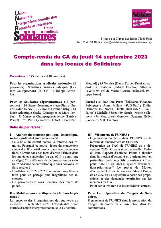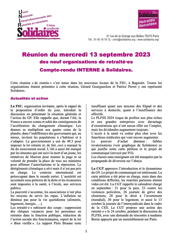 Décisions des organisations de retraité·es le 1er décembre 2025