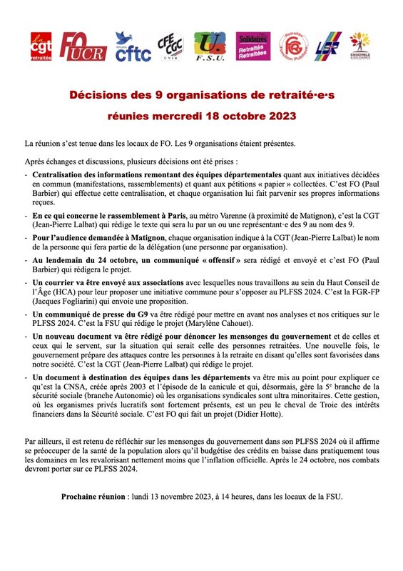 Decisions des 9 organisations de retraites