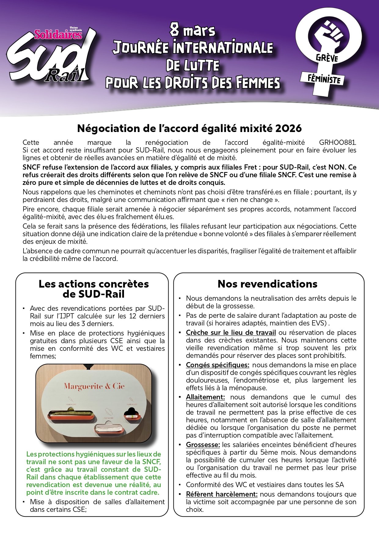 La lutte féministe est une lutte syndicale et elle est indissociable de nos combats antiracistes, antifascistes et anticapitalistes !