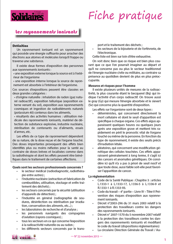 Fiche pratique sur les rayonnements ionisants
