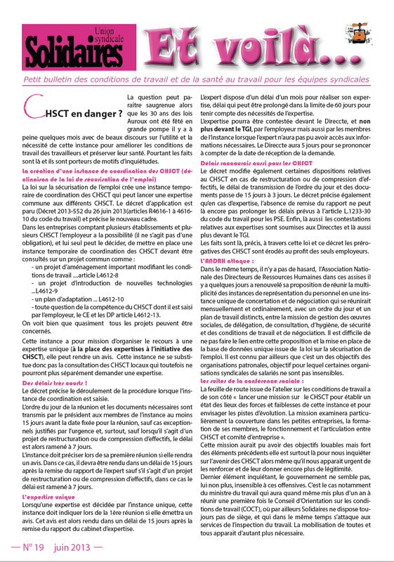 * page 3 : Vu du terrain : Solidaires Rhône, une pratique d’aide aux équipes et aux salariés ; Sud CT s’est réuni en congrès du 26 au 29 mars 2013 à ARZON (Morbihan)