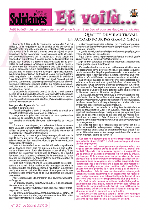 page 1 : Qualité de vie au travail : un accord pour pas grand chose