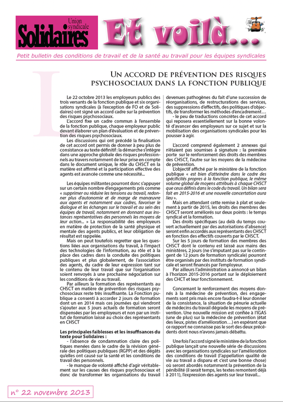 * page 1 : Un accord de prévention des risques psychosociaux dans la
