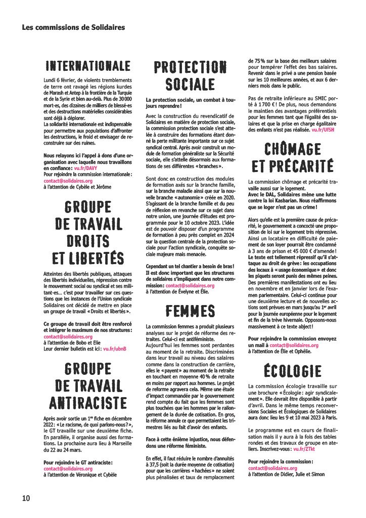 pour rejoindre la commission : contact@solidaires.org à l’attention de Didier, Julie et Simon