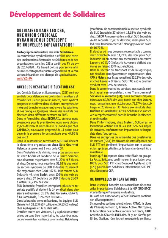 La commission syndicalisation a réalisé une carte des implantations électorales de Solidaires et de ses organisations dans les CSE à partir des PV du cycle 2017-2020… Ce travail doit se poursuivre afin de mieux cartographier notre organisation et la couverture/répartition des champs de syndicalisation.