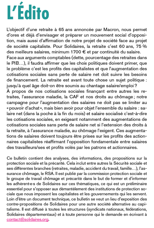 Editorial du numéro 2 du bulletin Protection sociale et précarité