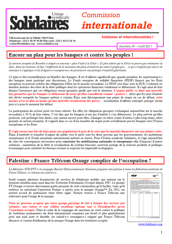 - Palestine : France Télécom Orange complice de l’occupation ?