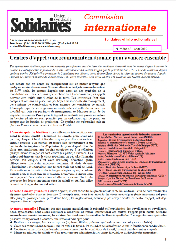 - Centres d’appel : une réunion internationale pour avancer ensemble