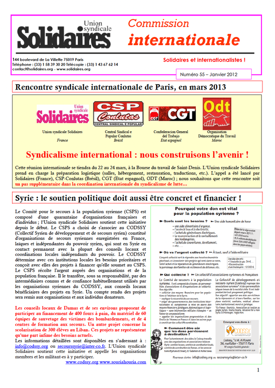 - Rencontre syndicale internationale de Paris, en mars 2013